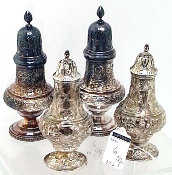 Tiffany & Co. Makers sterling silver set of 4 ornate allover floral repousse salt and pepperTremont Auctions4.6(313)$4005 days Left
