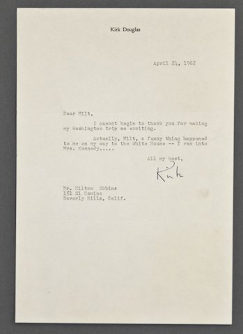 Kirk Douglas Signed Note