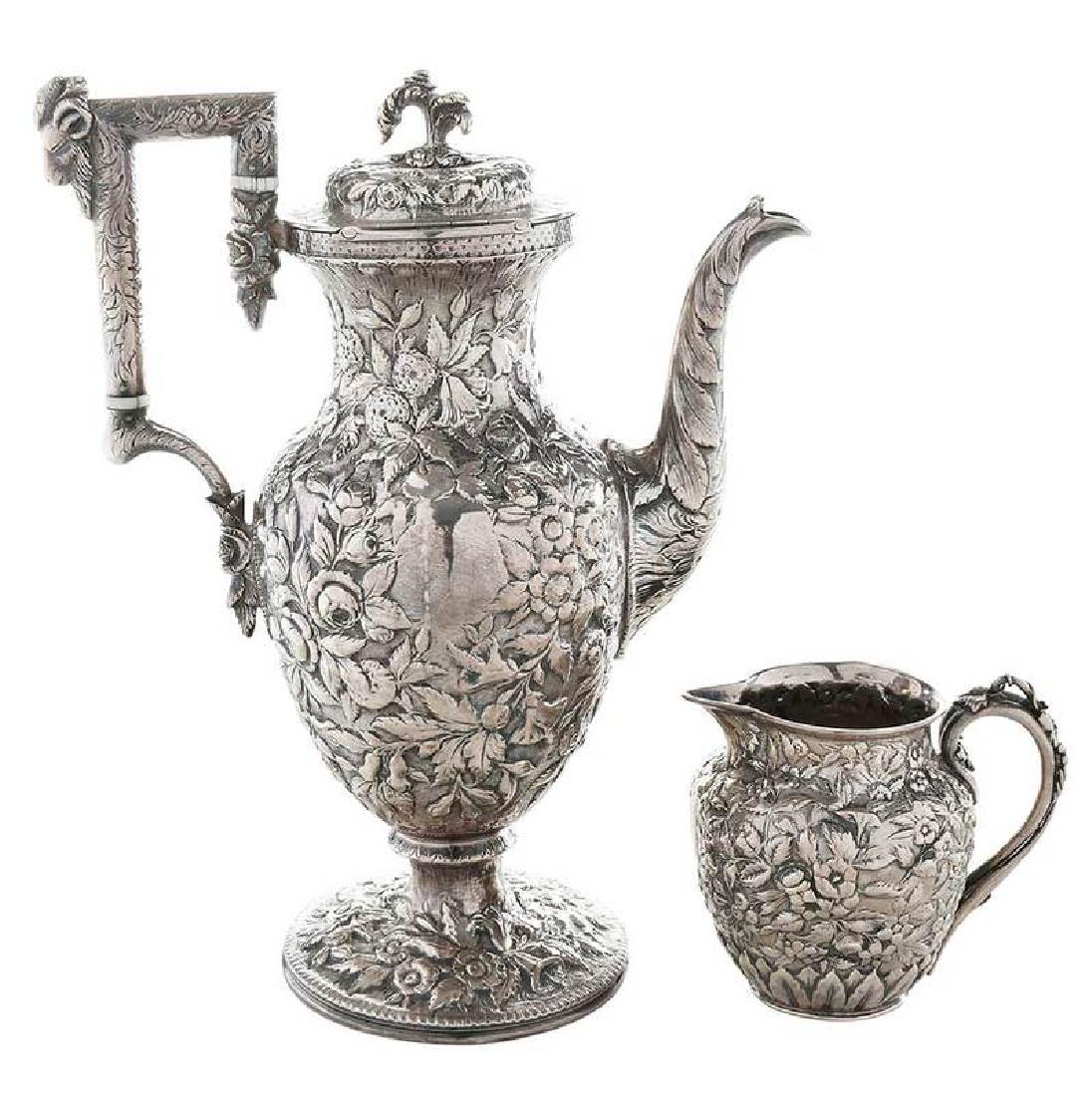 Kirk Repousse Coin Silver Coffee, Creamer