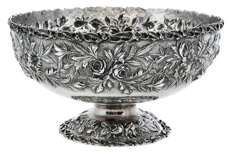 Vintage Silver Plated Footed Centrepiece BowlGeorge III English Silver Punch BowlMar 25, 2026Russian .875 Silver Bowl,LARGE MAUSER STERLING RETICULATED CENTERPIECEMar 24, 2026London 1830 by Robert Hennell III A William IV sterling silver sugar bowlSanborns Sterling Silver Centerpiece Bowl,Mueck-Carey Weighted Sterling "Royal Rose" Dish - 129.6 g9 hrs LeftElegant Handmade 925 Sterling Silver Fruit Bowl Centerpiece1 day LeftCut Crystal Compote Centerpiece Bowl Sawtooth RimMar 28, 2026Kirk Repousse Sterling PlateMar 26, 2026S. Kirk & Son Repousse Water Goblet Sterling 72 F Hand DecoratedApr 26, 2026Impressive Sterling Silver Wine CisternMar 29, 2026S. Kirk & Son "Four Seasons" Sterling Silver BowlMar 28, 2026Arthur Stone Sterling Silver Bowl2 days LeftEnglish Sterling Two Handled BowlMar 25, 2026Persian Chased 875-Silver Pierced Pedestal Centerpiece, Probably Isphahan, Mid-20th Century, Height:Mar 27, 2026