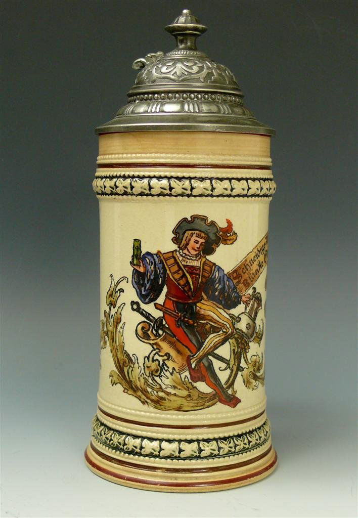 LOT OF GERMAN POTTERY, STEIN / MUG3 days LeftWWI German Bavarian Named Regimental Soldier SteinMar 07, 2026Mettlach Knight w Sword & Eagle Shield SteinMar 21, 2026German Westerwald Lidded Beer SteinMar 05, 2026Regimental Feld Art No 8 Saarlouis SteinMar 21, 2026Regimental Chevauleger SteinMar 21, 2026Mettlach Blacksmith & Landsknecht SteinMar 21, 2026Vintage German Beer Stein Lidded Pewter Festive Scene tall marked West Germany7 days LeftGerman Salt Glaze Octoberfest Stein4 days LeftVilleroy & Boch Stoneware Stein, MettlachMar 14, 20261L Knight at Castle Party Stein w Conical Inly LidMar 21, 2026Important Meissen 19th century TankardMar 08, 2026Large German Westerwald Salt Glaze Lidded Beer SteinMar 05, 2026Vtg Heidelberg Relief Ceramic Beer Stein GERMANY1 day Left1L Regimental SMS Berlin Kaiser Marine SteinMar 21, 2026Regimental Inft No 28 Coblenz SteinMar 21, 2026