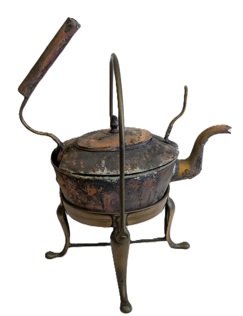 Knackered Copper Tea Pot on Brass Stand