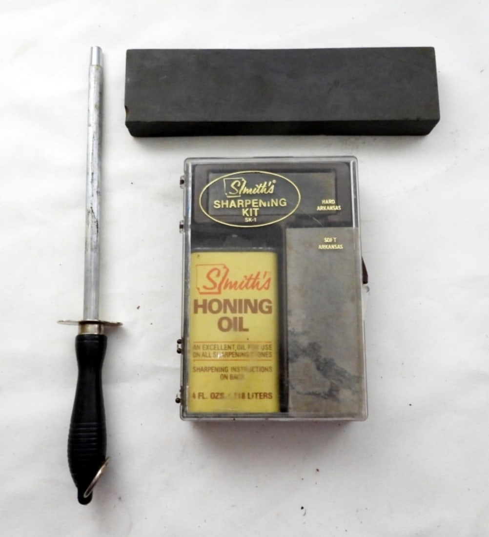 SMITHS SHARPENING STONE KIT1 day LeftJAGUAR POCKET KNIFE & SHARPENING HONES333 Lots AwayLot Of Vintage Muzzleloading And Pioneer Woodsmen Items7 days LeftCatlaraugus - dog bone celluloid knife, light sharpening, no cracksMiller Bros USA - Gold fill pen knife, heavy use and sharpening, weak snapCamco - cracked ice pen knife, heavy use and sharpening, weak snap, no cracksSet 3 Vtg Sterling Silver Roast Carving Set GER4 days LeftStandard Knife Co, bone stockman w/punch, heavy sharpening, light snap, short blades, no cracksLOT OF 5 US FIGHTING KNIVES.6 days LeftSyracuse Knife Co. - cracked ice jack, 4 pin cracks, good snap, full blades w/sharpening and useA Collection of Knives and Sharpening Stones Including Kershaw, Camillus, and FiskarsMay 02, 2026Utica Cutlery U.S. Model 1905, Etc. Bayonet, Knife . Very Good. . One US Model 1905 Bayonet with21 hrs LeftCHARIVARI SILVER COSTUME ORNAMENT W/ SOLINGEN KNIFE CIRCA 1900LOT OF 2 STUDIO LIGHT KITS2 days LeftEarly Camillus N.Y. 6" Blade Jet Pilot Survival KNIFE with the Original Leather SheathLot of Plastic Kits and Accessories4 days Left