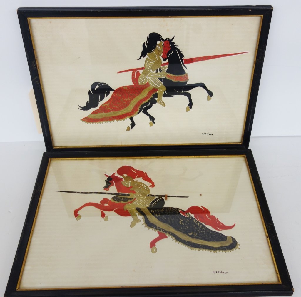Pair of Knight paintings by Reischy