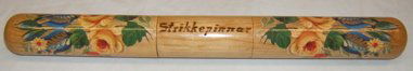 SoldEureka Steel Knitting TinsGerman tin litho case for needles. There is a dent in the tin tube see photo. 9".See Sold Price