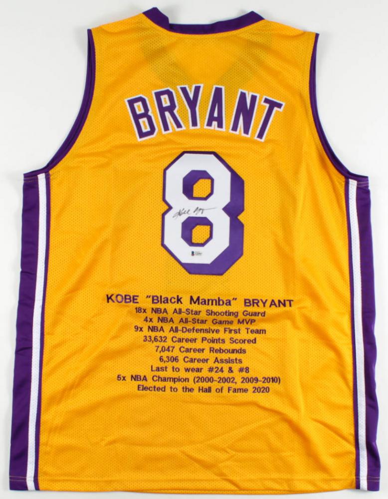 SoldKobe Bryant Signed Career Highlight Stat JerseyKobe Bryant Signed Career Highlight Stat Jersey (Beckett LOA & PSA COA)See Sold Price