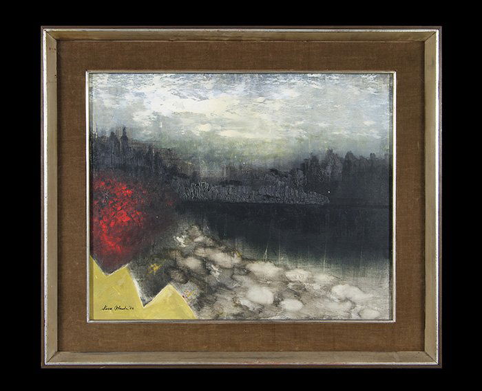 SoldKENZO OKADA, Important Japanese American, ABSTRACT OILKENZO OKADA, Important Japanese American artist [1902-1982], ABSTRACT OIL, oil on canvas board, signed. Size 24 in. x 18 in. painting image; 26 in. x 20 in. outer frame.See Sold Price