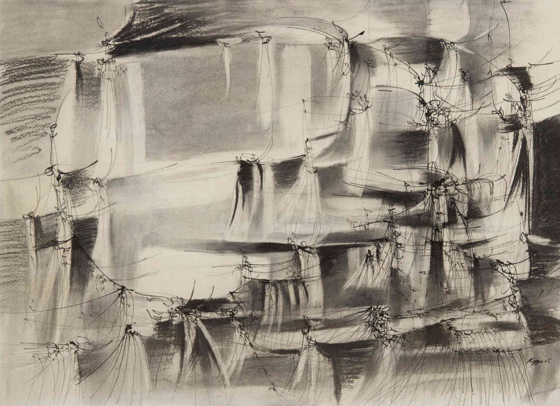 SoldWalter B. Colebrook(American, 20th Century) Abstract Wharf Scene, signed lower right "Walter B Colebrook, 1956", watercolor on paper, 25 x 20-1/4 in.; wood frame, 28 x 24 in. Provenance: Collection from Blue Haven, desiSee Sold Price