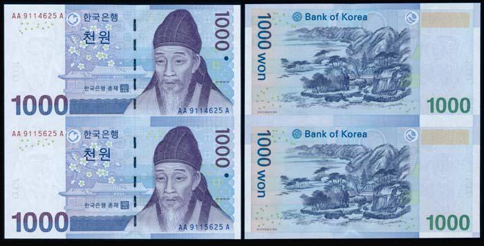 Korea 1000 Won 2007 uncut pair
