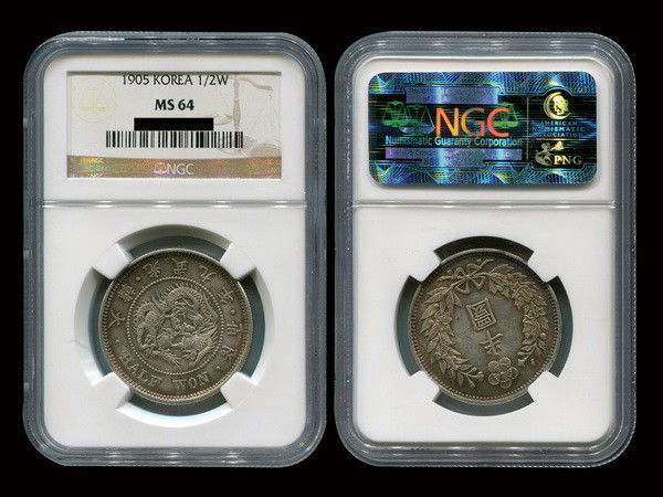 KOREA 1905 Half Won Silver, NGC MS64