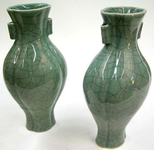 Korean celadon crackled-glaze vases