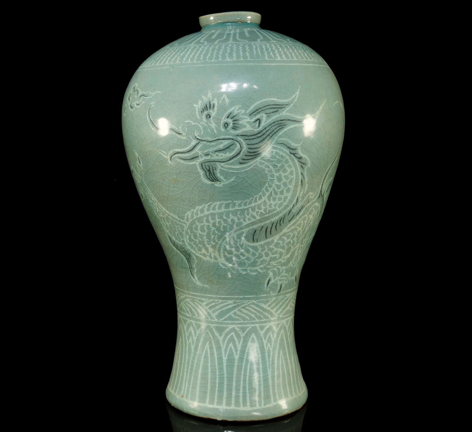 Korean Celadon-Glazed 'Dragon' Plum Vase