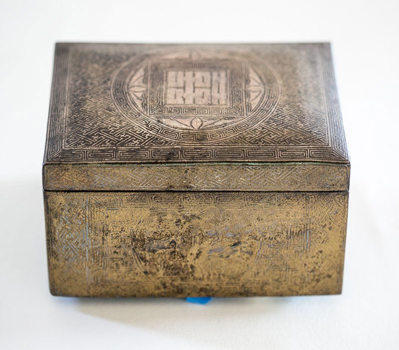 SoldKorean mixed metal boxKorean mixed metal box, depicting deer, cranes and turtles. 4 1/8"L x 3"W x 2 1/2"HSee Sold Price