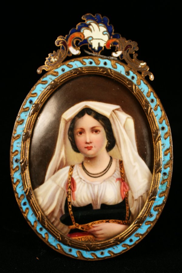 KPM Style Porcelain Miniature/Champleve Frame