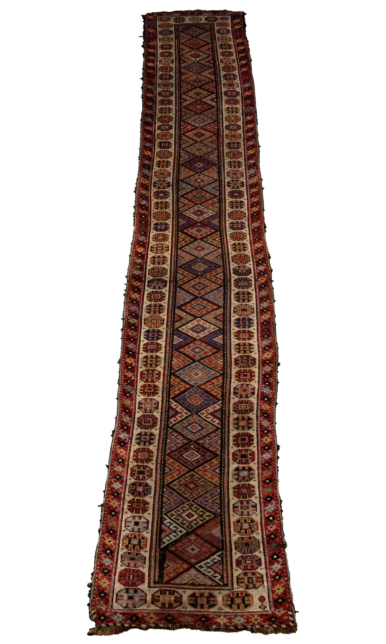SoldKurdish Yoruk 'Long-Rug',Kurdish Yoruk 'Long-Rug', Turkey, circa 1920/1930, wool/wool, approx. 296 x 97 cm, condition: 2-3, expressive colors.See Sold Price