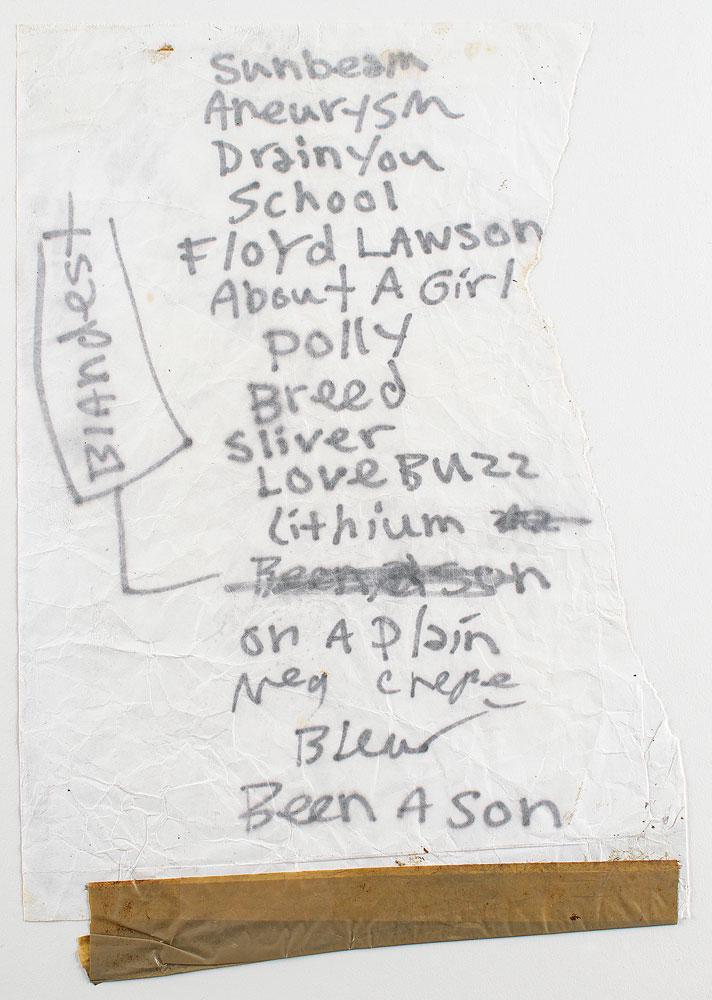 Kurt Cobain Handwritten Nirvana Setlist