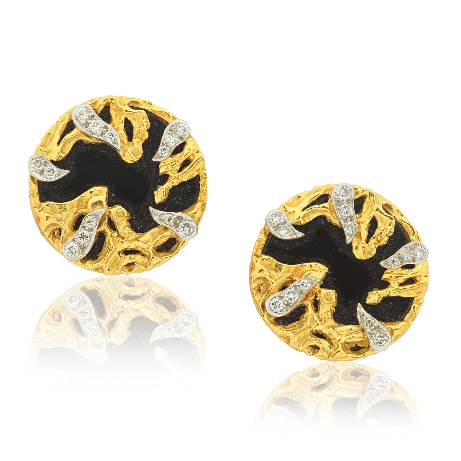 KUTCHINSKY: ONYX AND DIAMOND EARCLIPS,