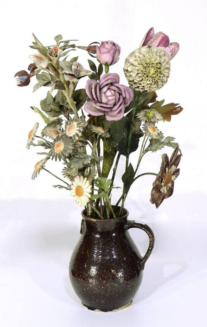 Bouquet de fleurs en porcelaine dans un cache-pot en tole peinte, XIXe siècleA 19th century...Bonhams4(380)€1,200