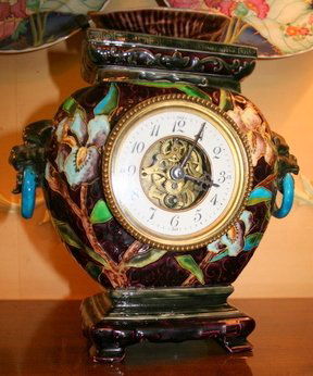 L. 19TH C. MAJOLICA MANTEL CLOCK;