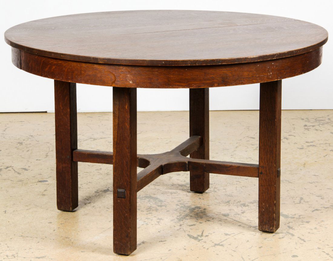 Gustav Stickley, Inlaid table5 hrs LeftGustav Stickley Oak Five Leg Dining Table and Six V-Back Dining Chairs, Early 20th Century, HeightMar 27, 2026ROBERT JOHNSON FURNITURE CUSTOM OAK-TOP HAMMERED IRON DINING TABLE, 72"DIAMMar 27, 2026Louis XIII Style French Round Dining Table with Hand-Carved Marquetry2 days LeftL&JG Stickley #549 Game Table c19104 days LeftLimbert Prairie School 60"d Pedestal Dining Table c19103 days LeftStickley Bros. Mission Oak Arts & Crafts Table6 days LeftGustav Stickley, Library table, model 6355 hrs LeftZentique Houston Traditional Dining Table Chestnut Finish Elm Plywood2 days LeftL&JG Stickley Five-Leg Dining Table c19104 days LeftDON RUSEAU CUSTOM OAK WOOD DRAW-LEAF DINING REFRACTORY TABLE (1 OF 2)3 days LeftTransitional Style Dining Table Solid Mango Wood Beachwood Finish 54 Inch3 days LeftGUSTAV STICKLEY BUNGALOW LIBRARY TABLE 401Mar 28, 2026Kindel Empire Design Mahogany Dining Table with 2 Leaves2 days LeftBiedermeier Style, Dining tableMar 26, 2026ELDRED WHEELER TRESTLE TABLE Massachusetts, 20th Century Height 30". Length 62". Width 40".Apr 09, 2026