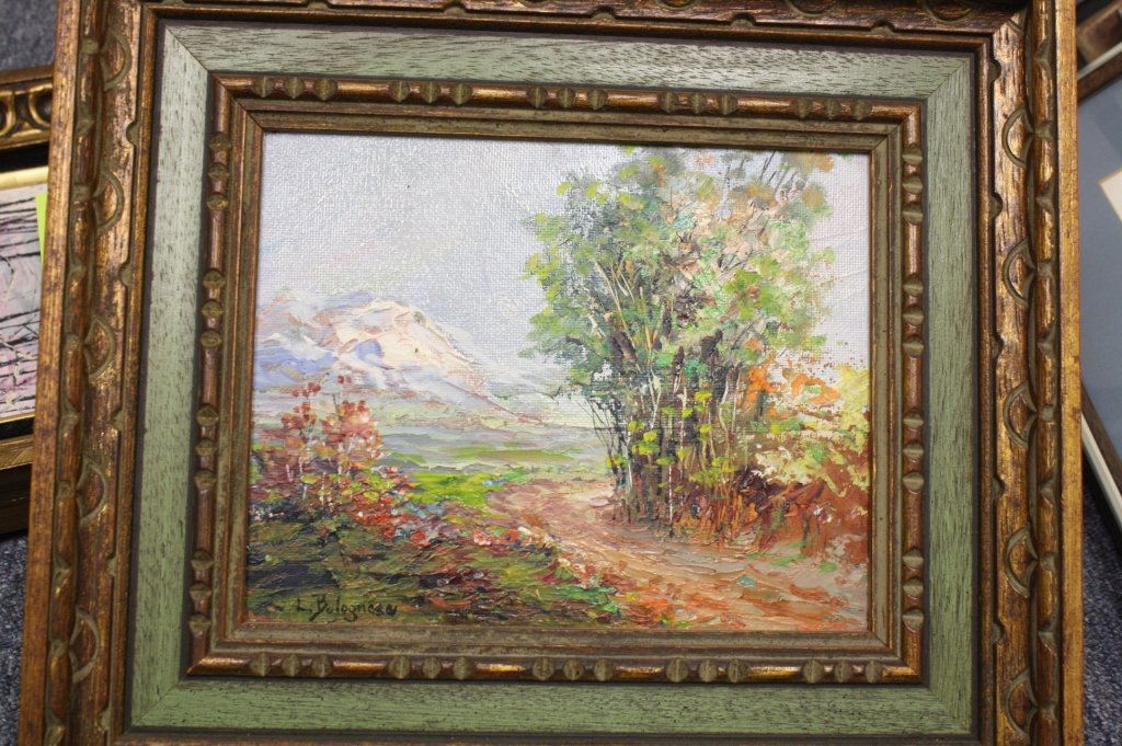 SoldL BOLOGNESE impressionist landscapeOil Impressionist landscape of the road and mountain signed L BOLOGNESE. Professionally framed and carved food frame measures 15 inches wide by 13 inches high.See Sold Price