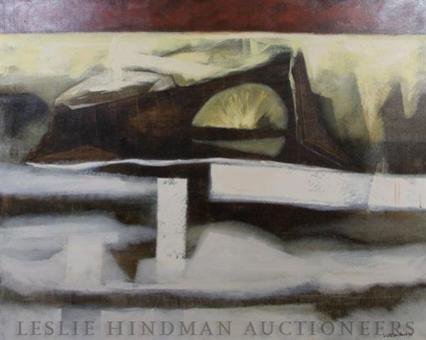 SoldKatie von der Ohe, Canadian (b.1937)Acrylic on paper showing an abstract study titled: ‘’Midsummer Knight’’. Signed ‘’Ohe’’ & dated 1961 l/r. Sheet size: 22-¼’’x15-¼’’, (Frame size: 31-½’��See Sold Price