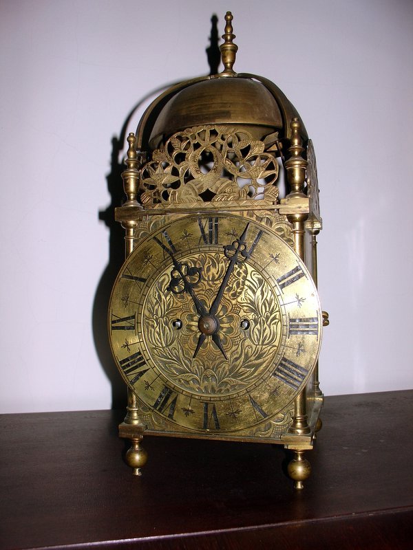SoldEnglish Lantern ClockA 17th century English Lantern clock by "Thomas Bagley, at the Mearmaid in Lothbury". 30 hr single weight time and strike movement with verge escapement, engraved Brass dial and Roman numerals, singleSee Sold Price