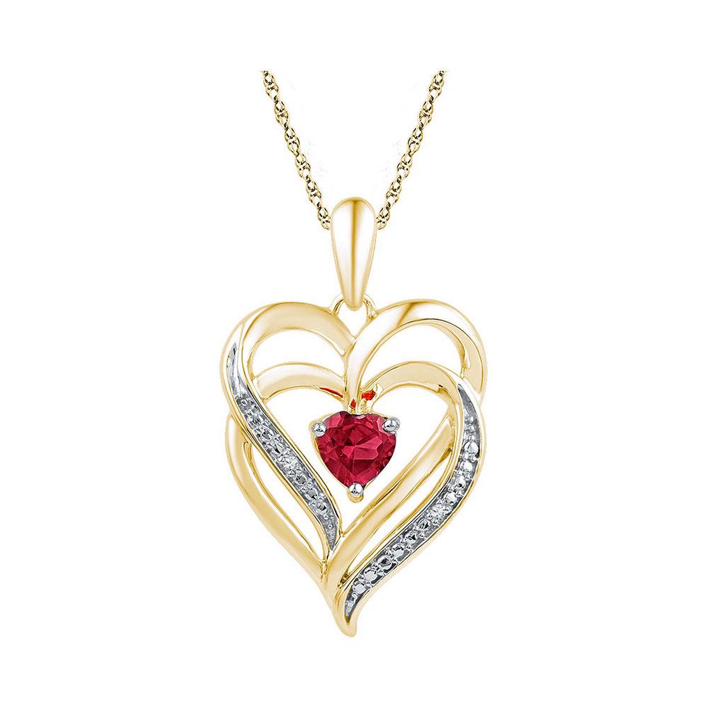 Lab-Created Ruby Heart Pendant .01 Cttw Yellow-tone