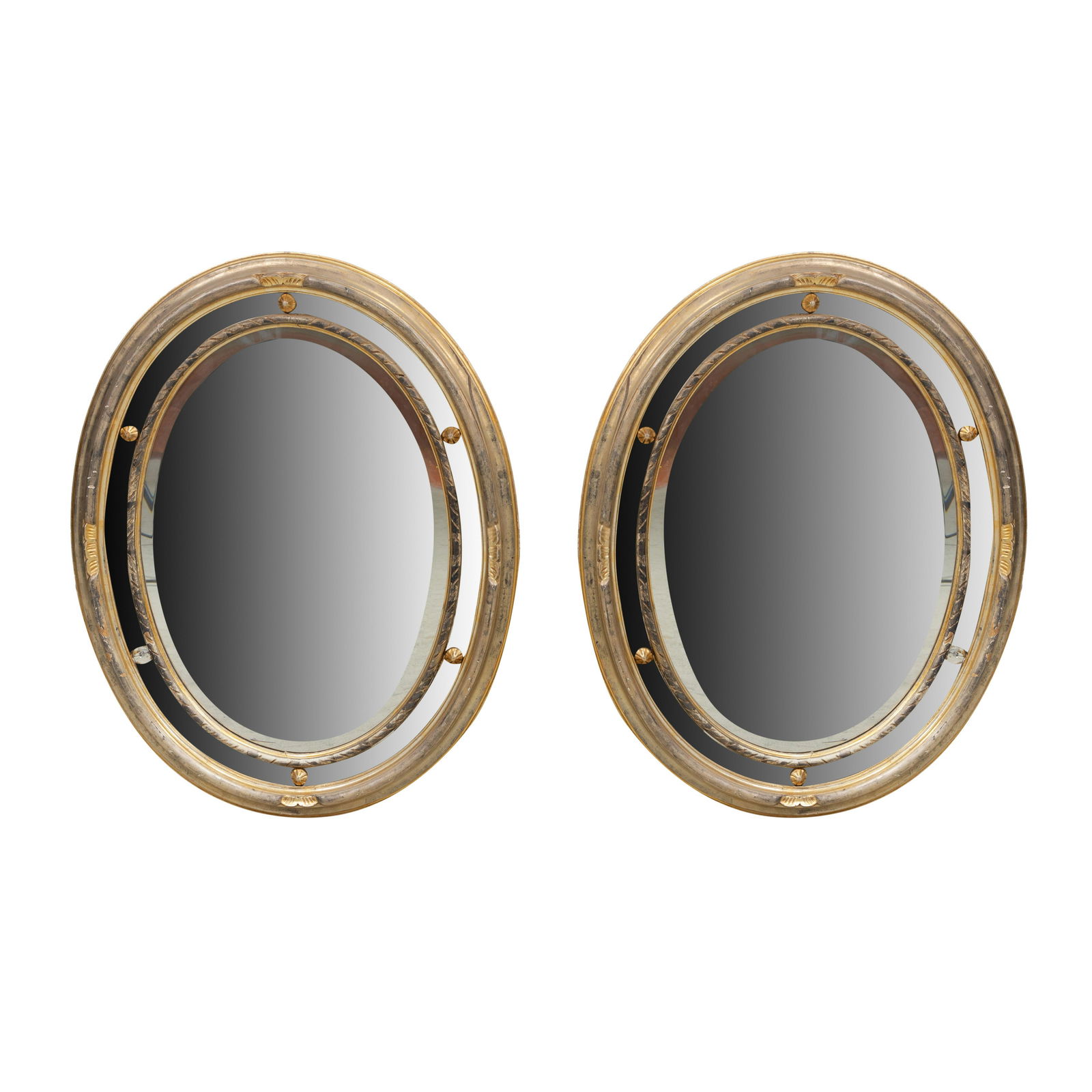Antique French Napoleon III Style Oval Wall Mirrors - Set of 2