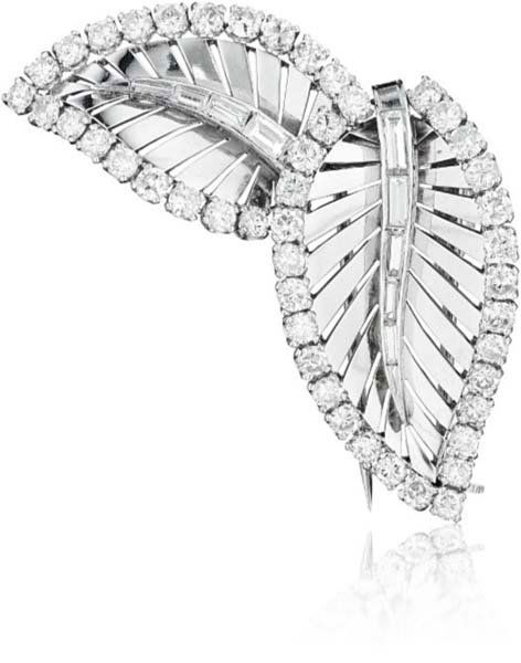 Cartier Brooch Platinum Foliate Design 1.35ct Diamond GIA E VS2