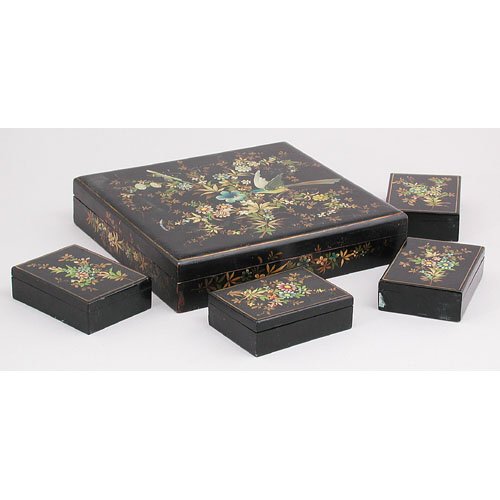 A Japanese Meiji Lacquer Bunko Document Box with Maki-e Clouds & Raden BirdCOAUCTION 4.4(16)$2006 hrs Left