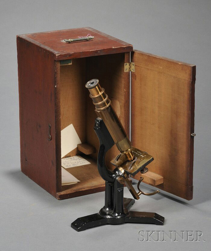 H Crouch Binocular Microscope w Petrographic Prisms1 day LeftCASED M. PILLISCHER BRASS MONOCULAR MICROSCOPE London, Mid-19th Century Microscope height approx.Mar 12, 2026CASED BOSTON OPTICAL WORKS TOLLES MICROSCOPE Mid-19th Century Case height 16.25". Width 6.75". DepthMar 12, 2026CASED BRASS ROSS-TYPE STEREOSCOPIC BINOCULAR MICROSCOPE England, Late 19th Century Microscope heightMar 12, 2026CASED J. ZENTMAYER BRASS MONOCULAR MICROSCOPE Philadelphia, Late 19th Century Case height 11.5".Mar 12, 2026Antique Brass Microscope by BAUSCH & LOMB OPTICAL CO. Rochester N.Y. U.S.A. Serial No. 2020625 days LeftCASED BAUSCH & LOMB MICROSCOPE New York, Early 20th Century Case height 15". Width 8.25". DepthMar 12, 2026French Compound Brass Microscope by Nachet, c. 1875Mar 14, 2026LACQUERED AND PAINTED BRASS SPECTROSCOPE Germany, Late 19th Century Height approx 18". Width approx.Mar 12, 2026Microscope by G. & S. Merz, Munich, c. 1860–70Mar 14, 2026Very Early Compound Microscope by Carl Zeiss in Jena, 1864Mar 14, 2026Box-Base Cary-Type Compound Microscope, c. 1840Mar 14, 2026CASED BRASS MONOCULAR MICROSCOPE Mid-19th Century Case height 4.5". Width 11". Depth 5.5".Mar 12, 2026ANTIQUE BAUSCH & LOMB MICROSCOPE, C. 19153 days LeftCASED BAUSCH & LOMB PHYSICIAN'S MODEL MICROSCOPE New York, Late 19th Century Microscope height 12".Mar 12, 2026Berlin Microscope by Messter, c. 1875Mar 14, 2026