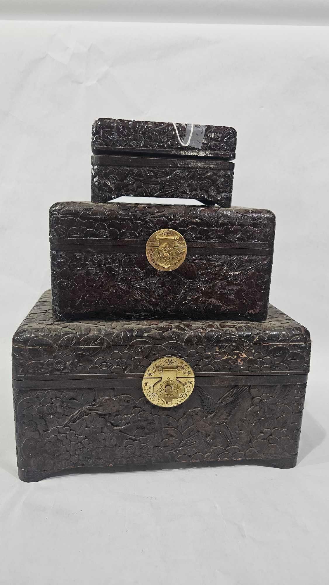 Lacquered Chinese Graduated Bird Chests