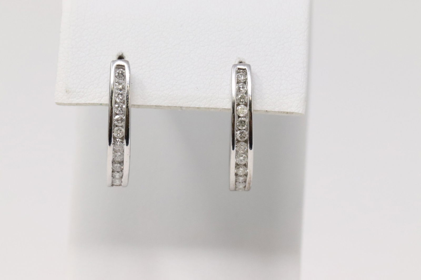 Elegant 14k White Gold 0.25ctw Diamond Hoop Earrings