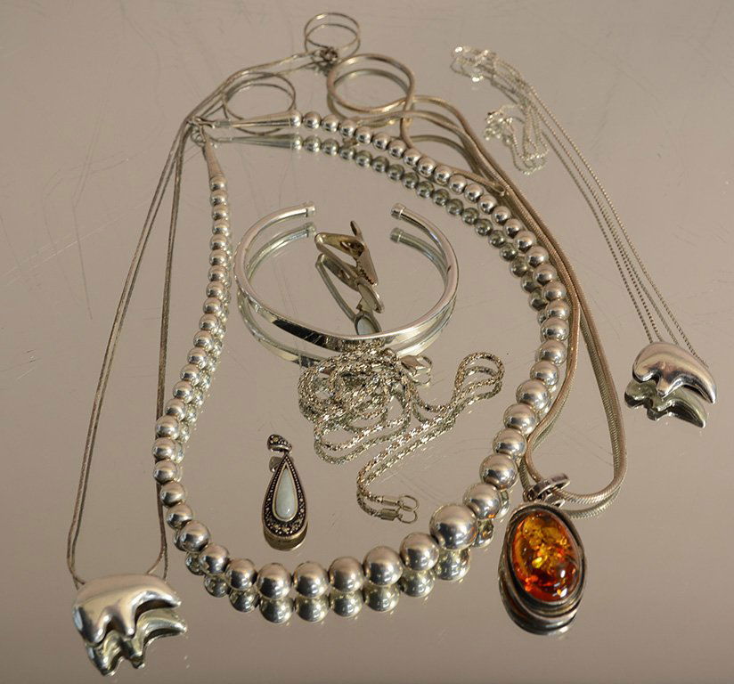 Sterling Silver Jewelry Lot. Rings size 8 - 9.5, Bracelets 8", Pendants 1.5" - 2" , Earrings 1.75".Bill Hood & Sons Art & Antique Auctions4.6(748)$1003 days Left