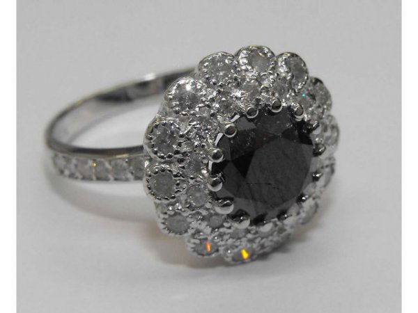 Black/White Diamond Ring 2.18Ct 14K White Gold
