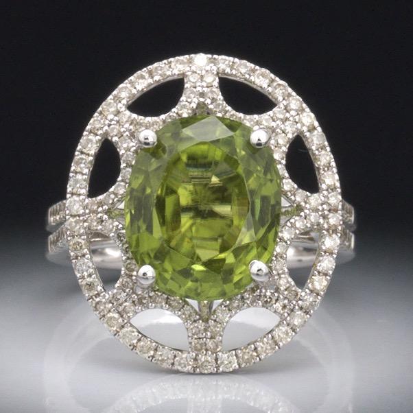 18K White Gold Ladies Ring with 5.28ct Peridot and 2.35ct tw Adjacent DiamondsRiverside Galleries4.5(205)$504 days Left