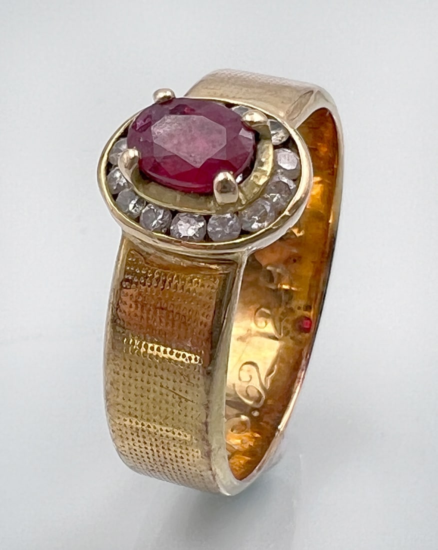 RETRO 18K GOLD RUBY AND DIAMOND RING