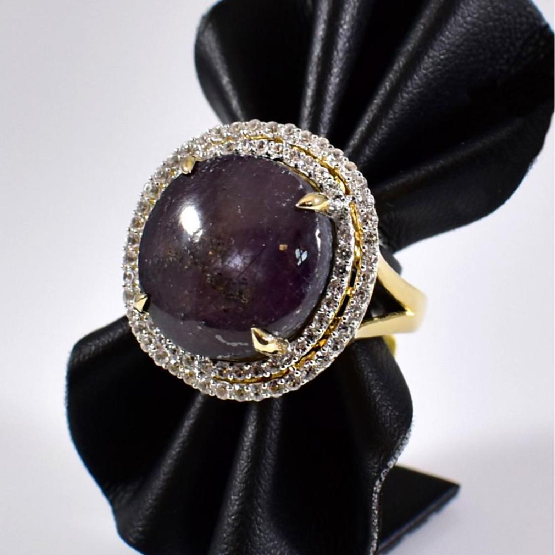 Sterling Gold Overlay 28.68 CT Star Ruby & Sapphire Ring