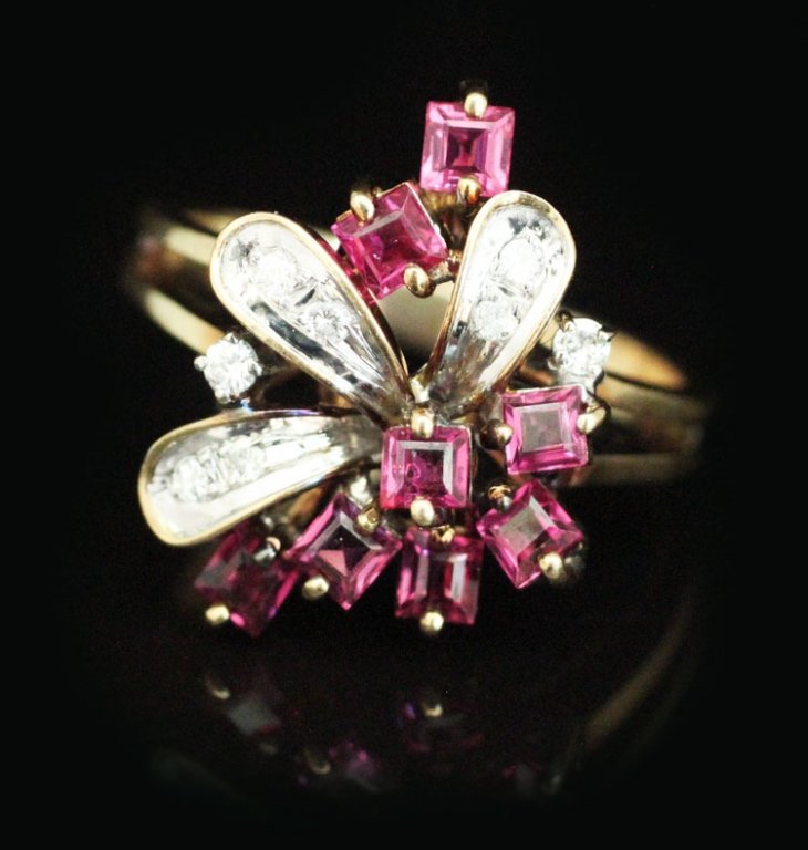 Ladies Ruby & Diamond Ring in Yellow Gold