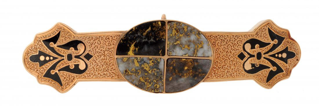 Victorian Era Yellow Gold Brooch with Quartz and Cultured Pearls Black EnamelBidhaus4.2(836)$1007 days Left