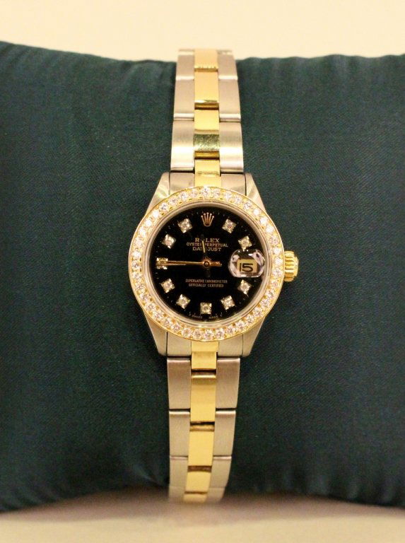 Rolex Two-Tone DateJust 26mm Factory (2) Diamonds Black Onix Dial Womens WristwatchPrestige Auction Galleries4.4(645)$504 days Left