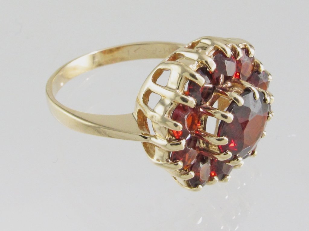 10ct natural oval garnets cluster ring 14kt gold 1930