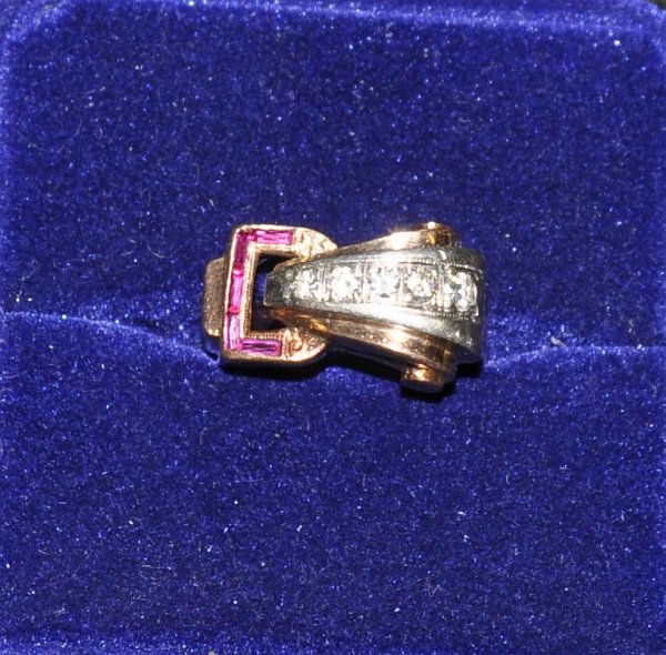 Lady's art deco diamond and ruby gold ring, 5.3 pw