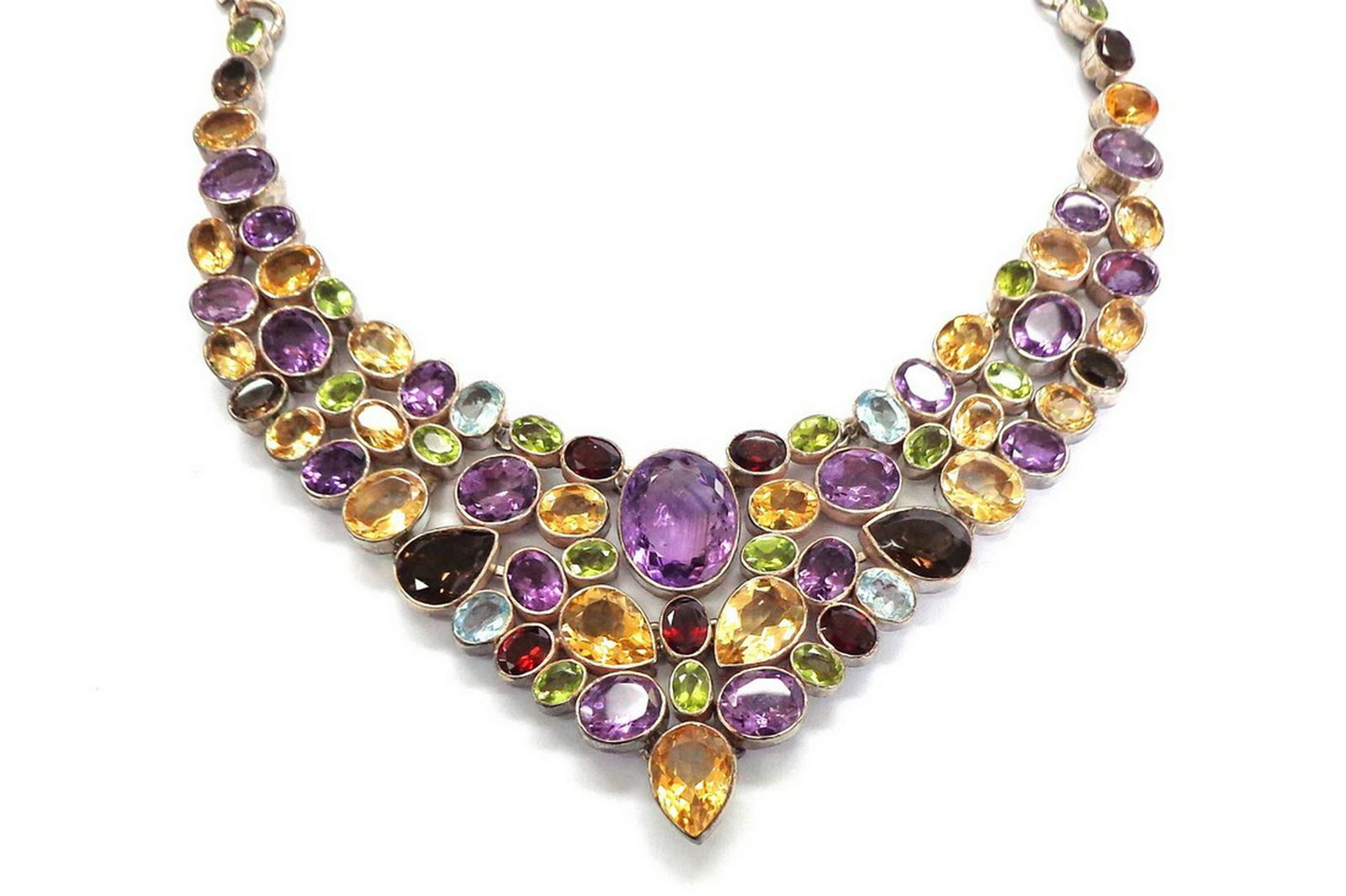 Stunning 14k White Gold Multicolor Gemstone Necklace 35 CaratsMynt Auctions4.4(835)$100(1 bid)3 hrs Left