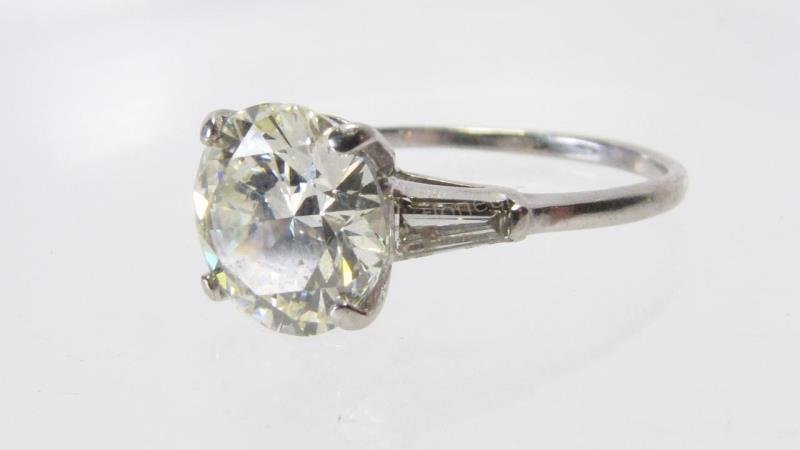 Lady's Platinum Diamond Solitaire Ring, Total Diamond Wt.- 1.80 carats, Size- 7 1/4, with appraisal.Lady's Platinum Diamond Solitaire Ring, the center mounted a 1.55 carat round brilliant cut white diamond in a diamond mounted basket setting, with eight tiny round white diamonds mounted on each shou