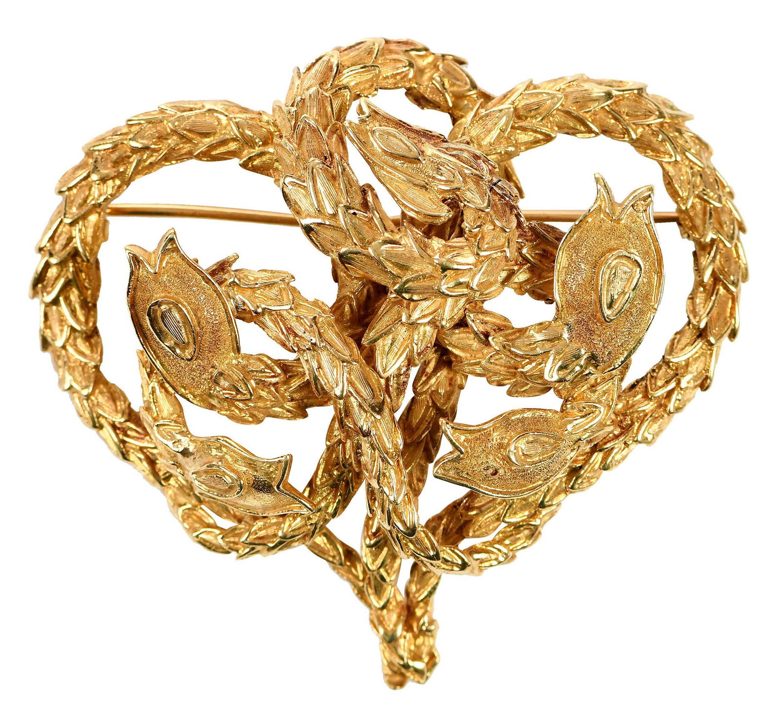 SoldJEWELRY. Signed Tiffany & Co. 18kt Gold Brooch.Signed Tiffany & Co. 18kt yellow gold foliate form brooch. Stamped, "Tiffany & Co 18kt" with an additional unidentified stamp. Total approx. weight is 26.3 dwt (gross). From a LarchmSee Sold Price