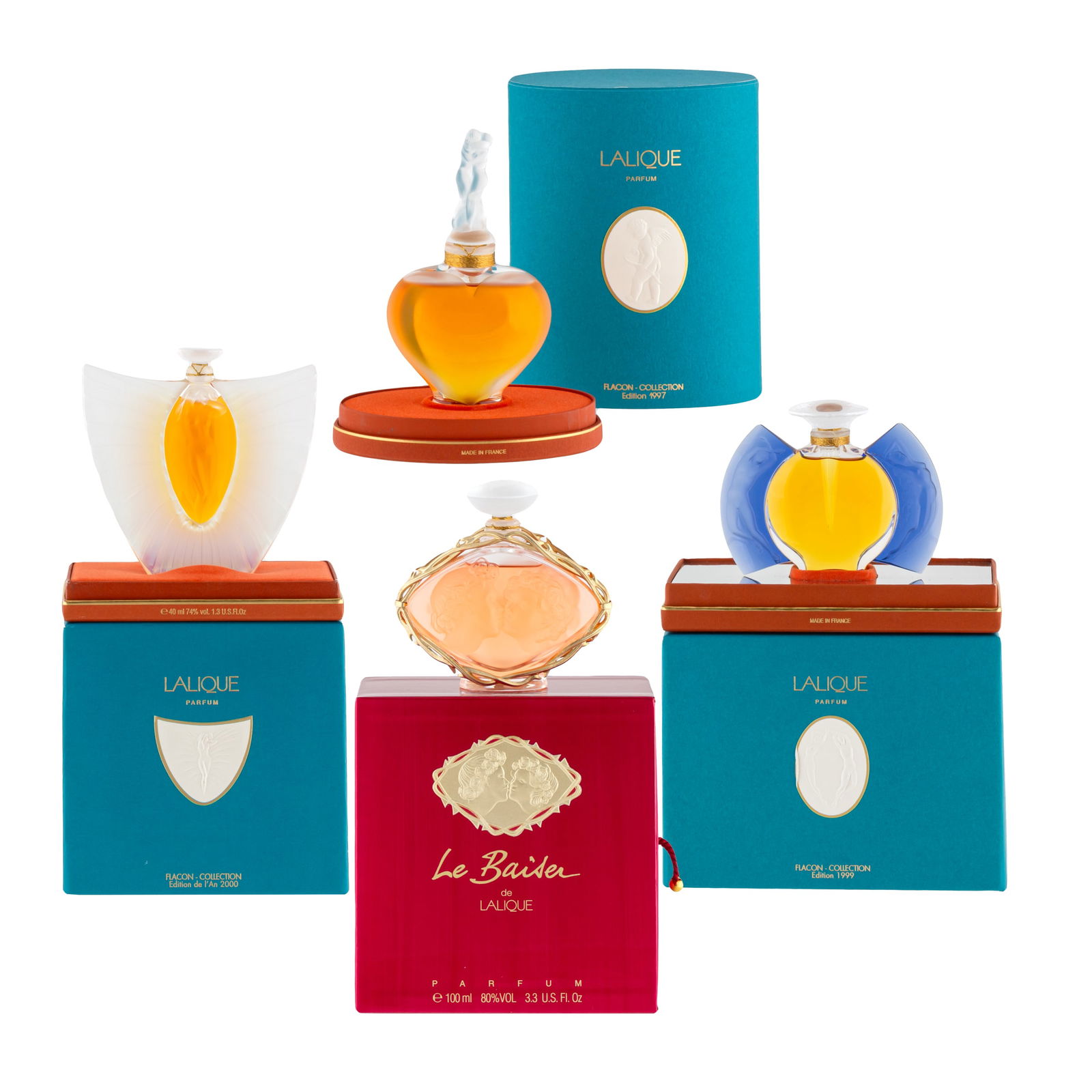 Lot of Perfume and Lotion BottlesFeb 12, 2026Blue, Amber & Pink Clear Crystal Decanters 4pc LOT2 days LeftArt Deco Vanity Dresser Glass Perfume Bottle LOTFeb 11, 20265 VINT. PERFUMES INCL. LALIQUE/WORTH GUERLAIN PARIS ++Feb 21, 2026Art Deco Glass Perfume Bottles w/ Silver Mount LOTFeb 11, 2026Three Glass Snuff Bottles, China, (3)4 Empty Glass Perfume BottlesFeb 03, 20263 French Sample Size Perfume Van Cleef Charles Jourdan2 days LeftSix Lalique Miniature Perfume Bottles2 days LeftLalique Marcel Franck & Other Perfume Bottles 6pcs2 days LeftLalique France Crystal Dahlia Perfume Bottle5 days LeftLalique Duncan Crystal Perfume Decanter2 days LeftLalique Crystal Tabletop Articles, 6Mar 12, 2026Lalique France, Dahlia Bottle (large and small), Daphne Box, and Bird of Prey, frosted and cut1 day LeftLalique France Clear & Frosted Crystal Deux Fleurs Perfume Bottle5 days LeftA Group of Eight Lalique Glass Table Articles2 days Left