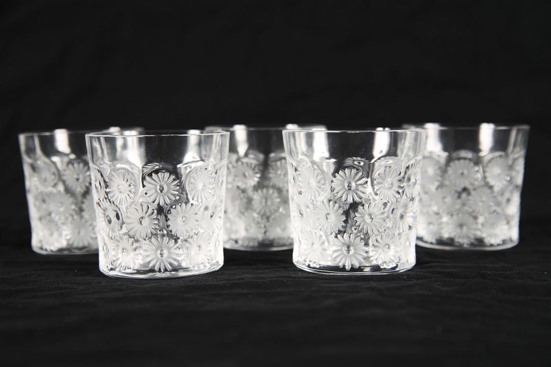 Lalique, Five "Napsbury" Old Fashioned Glasses
