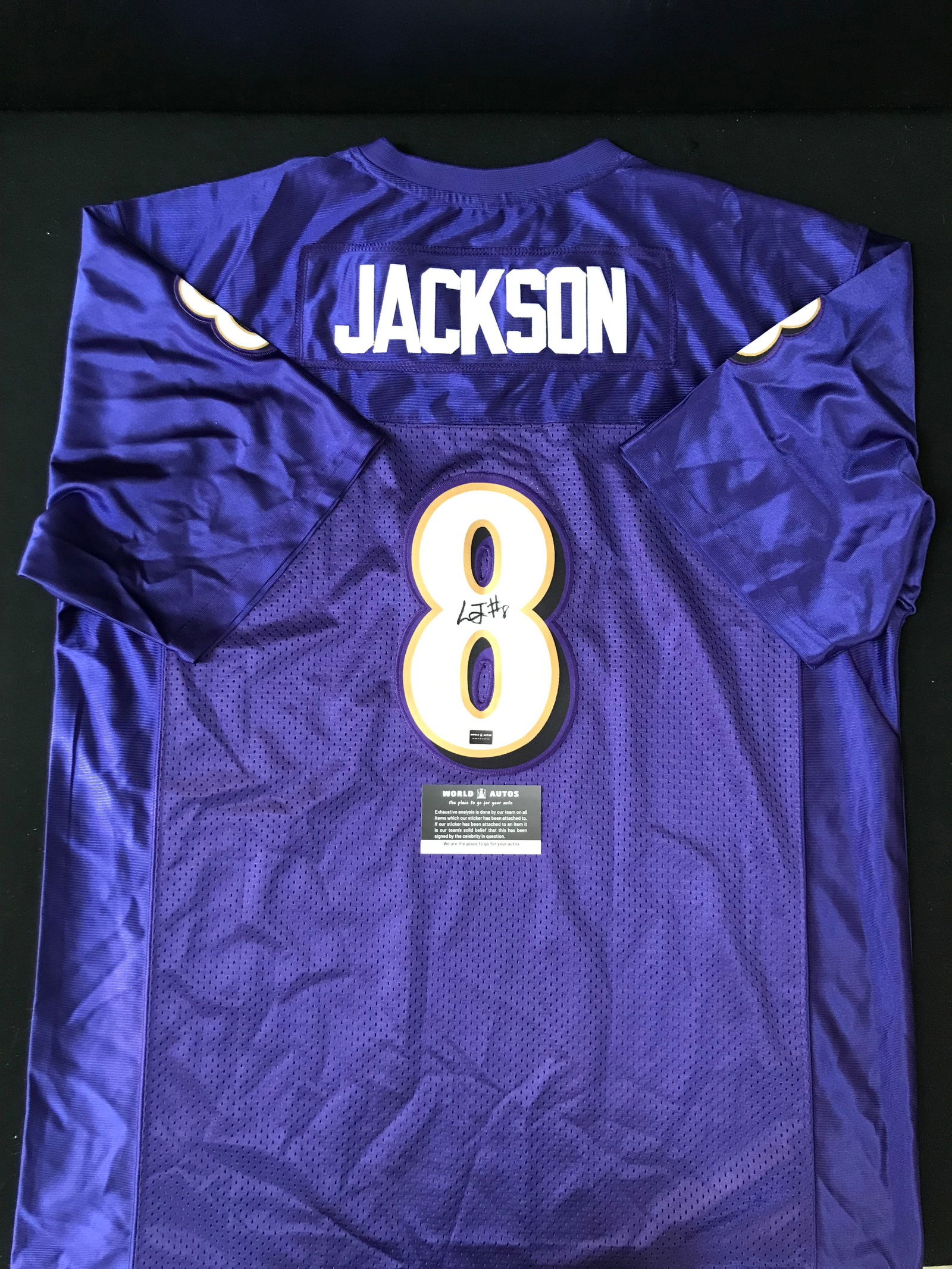SoldLamar Jackson Signed Jersey (JSA COA)Custom on-field style jersey. Everything is sewn on, size XL. Has been hand-signed by Lamar Jackson. The lot / autograph(s) includes an official James Spence Authentication (JSA) hologram and matchingSee Sold Price